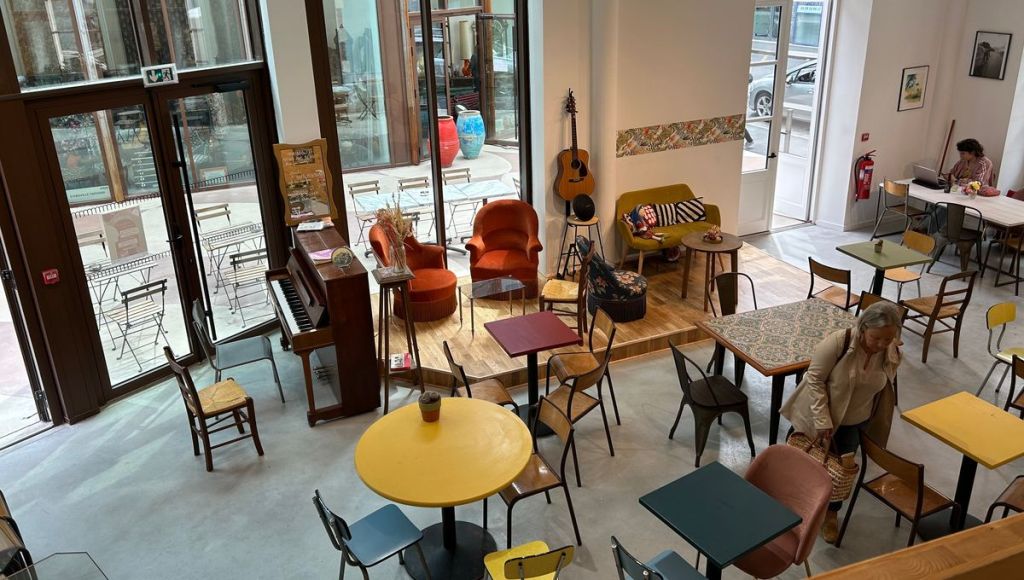Concrètement le lieu est un café à un étage, partiellement vitré et donnant sur un chemin piéton ; à l’intérieur la scène est concrétisée par une estrade en bois et face à elle des tables pour le public. Ce dernier est mixte puisque l’Aquiu a une programmation riche et diverse. Le lieu n’est pas en soi queer, mais plutôt friendly de façon non verbalisée. Le public de nos shows n’est pas uniquement communautaire ou averti, il y a toujours quelques personnes qui se retrouvent dans nos soirées par hasard, mais qui restent majoritairement une partie de la soirée.