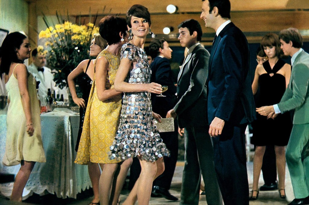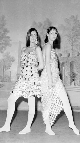 C’est l’année où Paco Rabanne présente sa première collection, il l’intitule « Douze robes importables en matériaux contemporains ». On retrouve l’importance des matériaux, de créer des tenues tournées vers le futur. Ces robes sont notables pour leurs sequins et surtout pour leurs plaques en Rhodoïd (matière plastique) – ce qui deviendra une spécificité de Rabanne – . Il enchaîne quelques mois après avec une collection de maillots de bain qu’il fait porter par les danseuses du Crazy Horse.