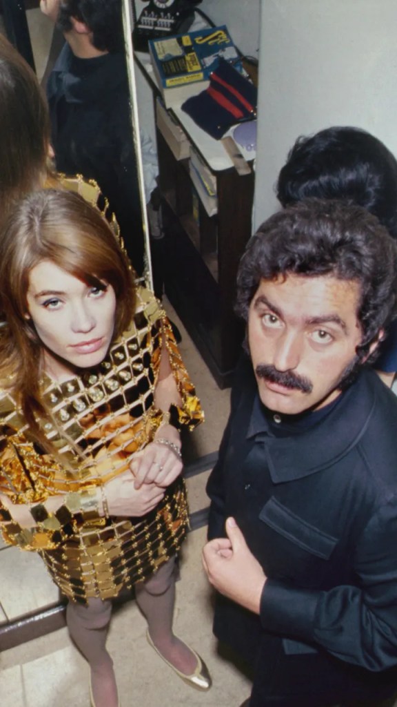 La fin des années 1960 est dédié à l’expérimentation, les tentatives autour des matériaux, et on retrouve par exemple : des robes de papier, du cuir fluorescent, du métal martelé, du jersey d’aluminium. Cette période est définitivement marquée par la robe qu’il crée pour Françoise Hardy (1968) : celle qui sera surnommée « la robe la plus chère du monde ». Elle la porte lors de l’Exposition internationale de diamants en mai, d’or et de diamants le prix est estimé à plus de 10,4 millions d’euros.
